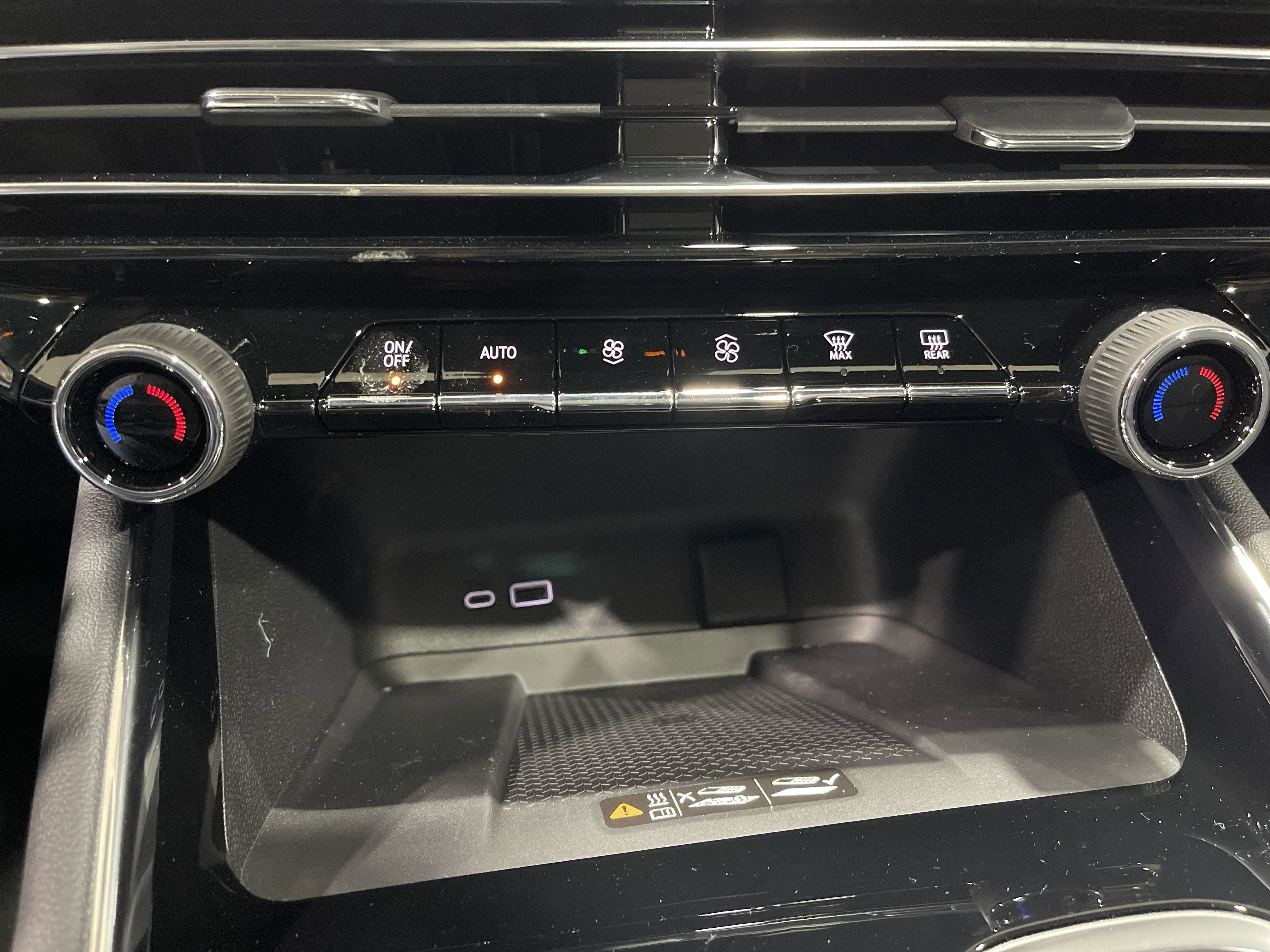 - Auxiliary controls in the rear of the cabin include air delivery mode and temperature up/down settings